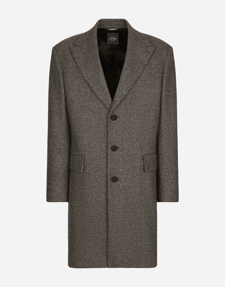 Single-breasted herringbone wool jersey coat. • Regular fit • Peak lapels • Button fastenings • Outer welt pockets with flap and breast pocket, inner welt pockets with button • Central rear vent • Partial lining • The piece measures 101 cm from the rear collar seam on a size IT 48 • The model is 185 cm tall and wears a size IT 48 • Made in Italy Care And Details External composition: 43% Wool 20% Polyester 16% Acrylic 15% Polyamide Internal composition: 100% Viscose
