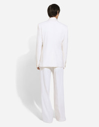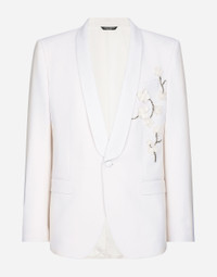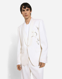 The SS24 “Stile” Collection recounts and clearly presents a strong concept: the unique and unmistakable style of Dolce&Gabbana. A word that is more than a statement. It is a concept! The designers work with surfaces, textures, layers and color nuances, as well as the sheen and fineness of the materials themselves, creating a “Stylish” collection. We’re going back to our roots with the desire to reaffirm the “Stile” - style -, flair and iconic DNA of the brand. Tailored single-breasted stretch wool jacket: • White • Classic Martini fit • Shawl lapels • Button fastening at the front • Organza flower, crystal and gemstone embellishment • Outer flap pockets and breast pocket, inner welt pockets • Buttoned cuffs • Central vent • Lined • The piece measures 73.5 cm from the rear collar seam on a size IT 48 • Made in Italy External composition: 77% Virgin Wool 16% Silk 4% Polyester 3% Spandex Internal composition: 100% Silk