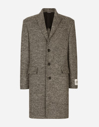 Single-breasted melange diagonal-weave wool coat