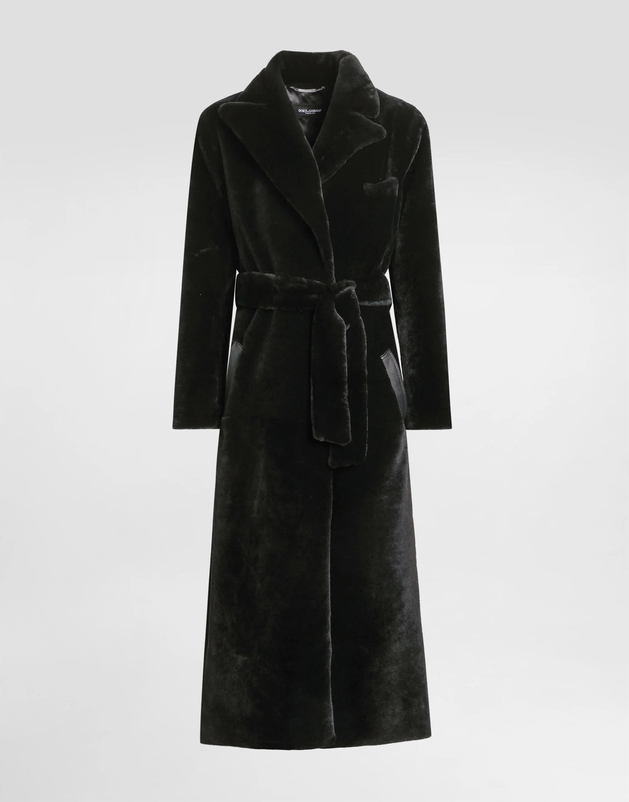 The scene is set for Dolce&Gabbana's distinctive and iconic aesthetic codes in the Collection from Men's Fall/Winter 2025 Fashion Show. The evening lights up with radiant brooches and is enriched with classic suits and blazers of timeless elegance. This single-breasted coat in lamb shearling is an essential piece for those looking for elegance and warmth during the cold season. Single-breasted shearling coat: • Black • Rounded lapel • Lined • The model is 185 cm tall and wears a size 48 IT • Made in Italy External Composition: 100% Lamb
