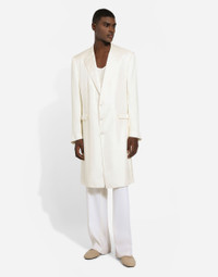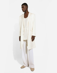 The SS24 “Stile” Collection recounts and clearly presents a strong concept: the unique and unmistakable style of Dolce&Gabbana. A word that is more than a statement. It is a concept! The designers work with surfaces, textures, layers and color nuances, as well as the sheen and fineness of the materials themselves, creating a “Stylish” collection. We’re going back to our roots with the desire to reaffirm the “Stile” - style -, flair and iconic DNA of the brand. Single-breasted silk twill coat: • White • Regular fit • Peak lapels • Covered button fastenings • Flap pockets and breast pocket, inner pockets with double piping • Buttoned cuffs • Central vent • Lined • The piece measures 106 cm from the rear collar seam on a size IT 48 • Made in Italy External composition: 100% Silk Internal composition: 100% Silk