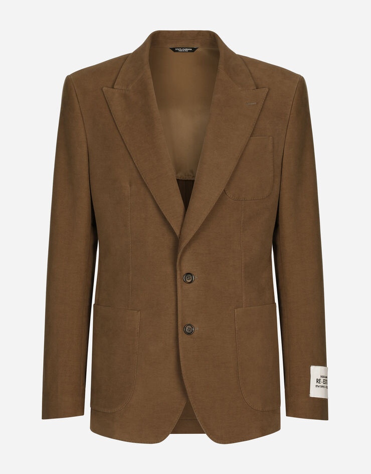 Tailored deconstructed single-breasted jacket in stretch fustian with the Re-Edition label: • Beige • Regular fit • Peak lapels • Button fastenings on the front • Outer patch pockets and inner welt pockets with button • Buttoned cuffs • Central vent • Unlined • The piece measures 73.5 cm from the rear collar seam on a size IT 48 • The model is 185 cm tall and wears a size IT 48 • Made in Italy Care And Details External composition: 98% Cotton 2% Spandex