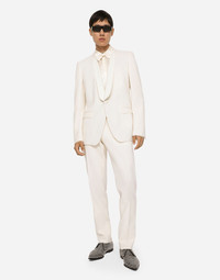 Tailored single-breasted tuxedo jacket in stretch wool with duchesse details: • Slim Sicilia fit • Shawl lapels • Single-button fastening on the front • Outer flap pockets and breast pocket, inner welt pockets • Buttoned cuffs • Central vent • Lined • The piece measures 73.5 cm from the rear collar seam on a size IT 48 • The model is 185 cm tall and wears a size IT 48 • Made in Italy Care And Details External composition: 81% Wool 13% Silk 4% Polyester 2% Spandex Internal composition: 100% Silk