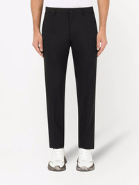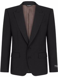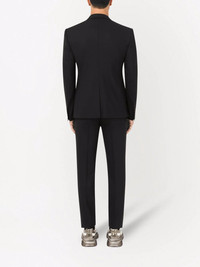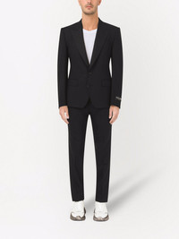 Sicilia-fit single-breasted suit Black virgin wool blend single-breasted suit from DOLCE & GABBANA. Highlights - Black virgin wool blend single-breasted suit from dolce & gabbana featuring peak lapels, front button fastening, two side flap pockets, long sleeves, logo patch at the sleeve, central rear vent, mid-rise, belt loops, front button fastening, two rear button-fastening pockets and slim cut. Made in Italy Composition Outer: Virgin Wool 95%, Elastane 5%