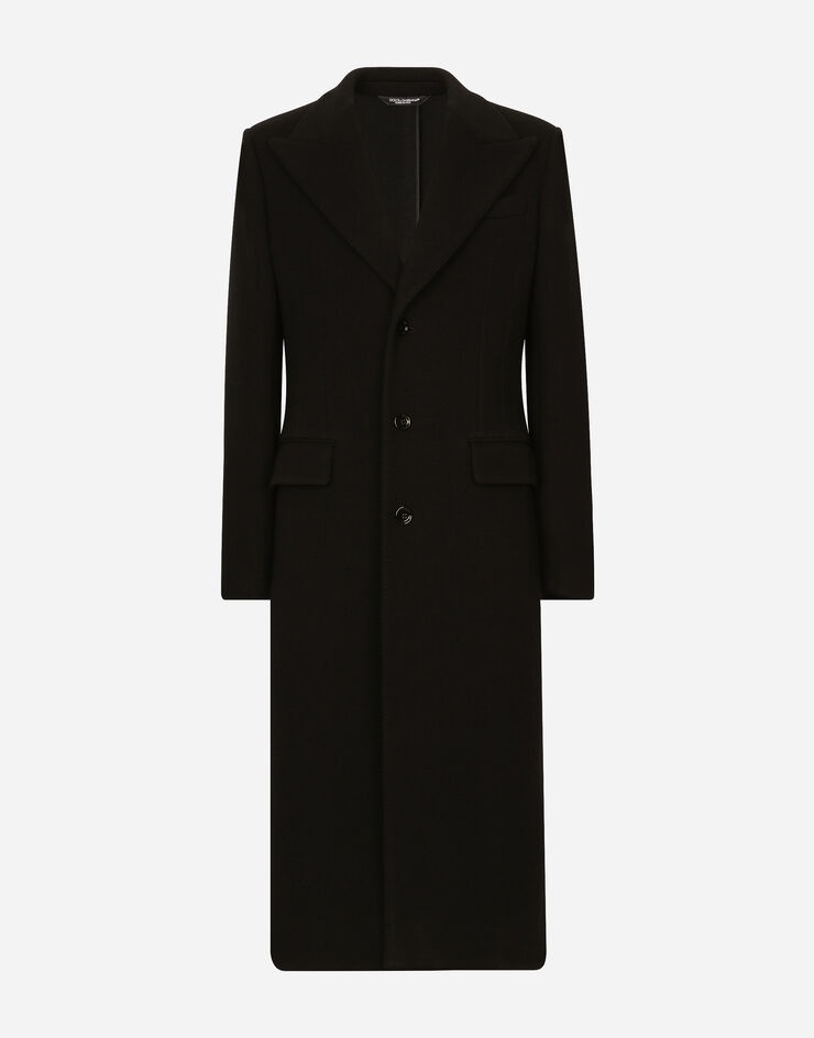 Deconstructed single-breasted coat in felted-effect stretch technical wool jersey: • Slim fit • Peak lapels • Button fastenings • Flap pockets, a welt breast pocket and inner welt pockets with button • Buttoned cuffs • Central vent • Unlined • Black • The piece measures 130 cm from the rear collar seam on a size IT 48 • The model is 185 cm tall and wears a size IT 48 • Made in Italy Care And Details External composition: 64% Virgin Wool 32% Polyamide 3% Viscose 1% Spandex