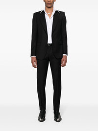 single-breasted wool blazer Highlights - Black - Virgin wool - Herringbone pattern - Peak lapels - Long sleeves - Buttoned-cuff sleeves - Chest welt pocket - Two front flap pockets - Central rear vent - Internal slip pockets - Full lining - Front button fastening Made in Italy Composition Lining: Silk 100% Outer: Virgin Wool 100% SIZE & FIT Model measurements Height 6 ft 2 in(1.87 m) Bust/Chest 37 in(94 cm) Hips 33.85 in(86 cm) Waist 27.95 in(71 cm) FittingInformation Designed for a slim fit, offering a comfortable fit that sits just away from the body The internal shoulder pads offer a structured shape Made from a midweight non-stretch fabric This piece fits true to size – take your usual size