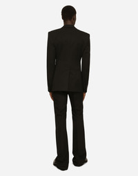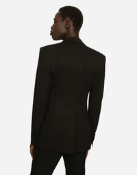 Tailored single-breasted wool faille jacket: • Slim Sicilia fit • Peak lapels • Double-button fastening on the front • Outer flap pockets and breast pocket, and inner welt pockets with button • Buttoned cuffs • Central vent • Lined • Black • The piece measures 73.5 cm from the rear collar seam on a size IT 48 • The model is 185 cm tall and wears a size IT 48 • Made in Italy Care And Details External composition: 100% Virgin Wool Internal composition: 100% Silk