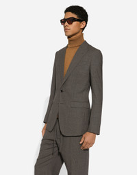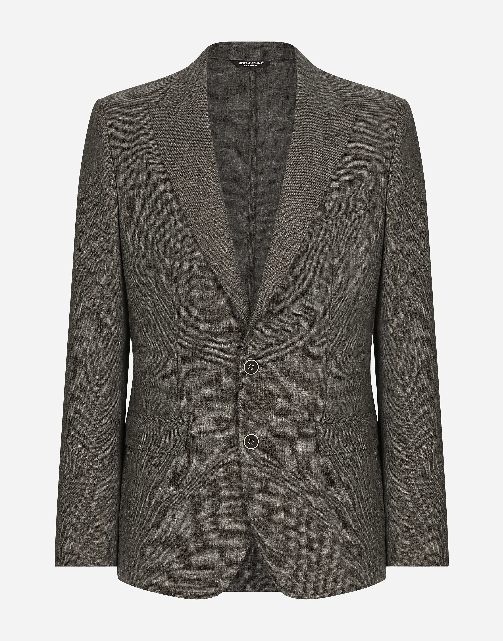 Tailoring means beauty, proportions, skilled cuts and sophisticated details. The FW 24-25 Sartoriale Collection builds on this solid foundation to define new ways of pairing colors, materials and textures.Sicilian rock gray envelops different textures, while Nero Sicilia black adorns textile and velvet weaves and camel pairs with orange. Various types of pinstripes, textured-effect cashmere, double fabrics, suede and denim meet in the looks. Tailored single-breasted pure virgin wool jacket: • Gray • Regular Taormina fit • Peak lapels • Double-button fastening on the front • Outer flap pockets and breast pocket, inner welt pockets • Buttoned cuffs • Central rear slit • Unlined • The piece measures 73.5 cm from the rear collar seam on a size IT 48 • Made in Italy External composition: 100% Wool Internal composition: 100% Cotton