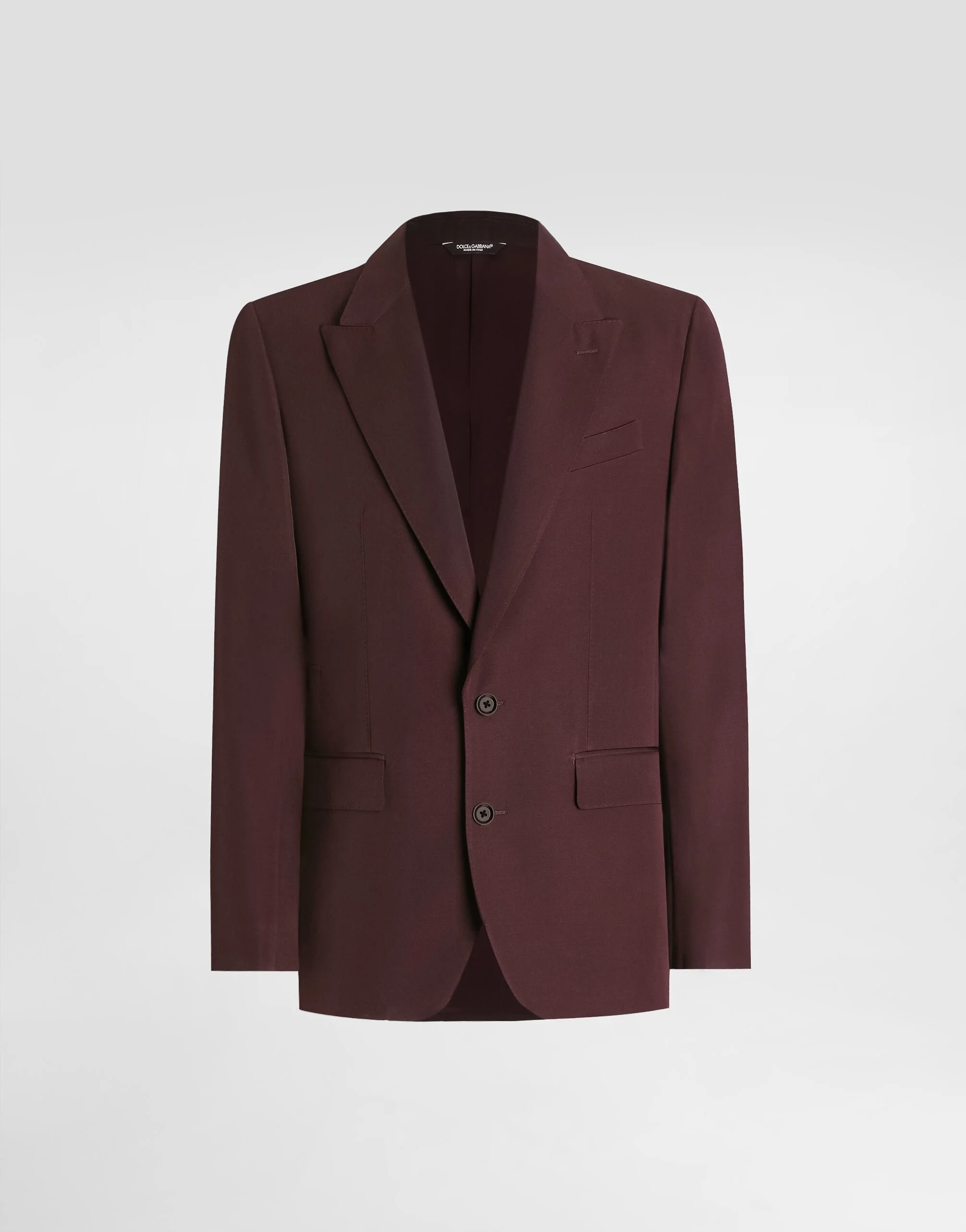 Italy and its beauty are reflected in the Men’s SS25 Collection. Woven raffia and leather give life to jackets, polo-shirts and sweaters to celebrating Italian craftsmanship. The color palette ranges from Nero Sicilia black to burgundy, contributing to conveying a sense of eternal elegance. Refined accessories complement the look: belts and loafers with hand-finished details and oversize bags, such as the Sicily, the Marlene with crocodile-effect print and the versatile Adamo tote. Single-breasted woolen jacket: • Brown • Deconstructed light Sicilia fit • Peak lapels • Double-button fastening on the front • Outer flap pockets and breast pocket, and inner welt pockets with button • Buttoned cuffs • Central vent • Lined • The piece measures 73.5 cm from the rear collar seam on a size IT 48 • Made in Italy External composition: 100% Wool Internal composition: 76% Acetate 24% Silk