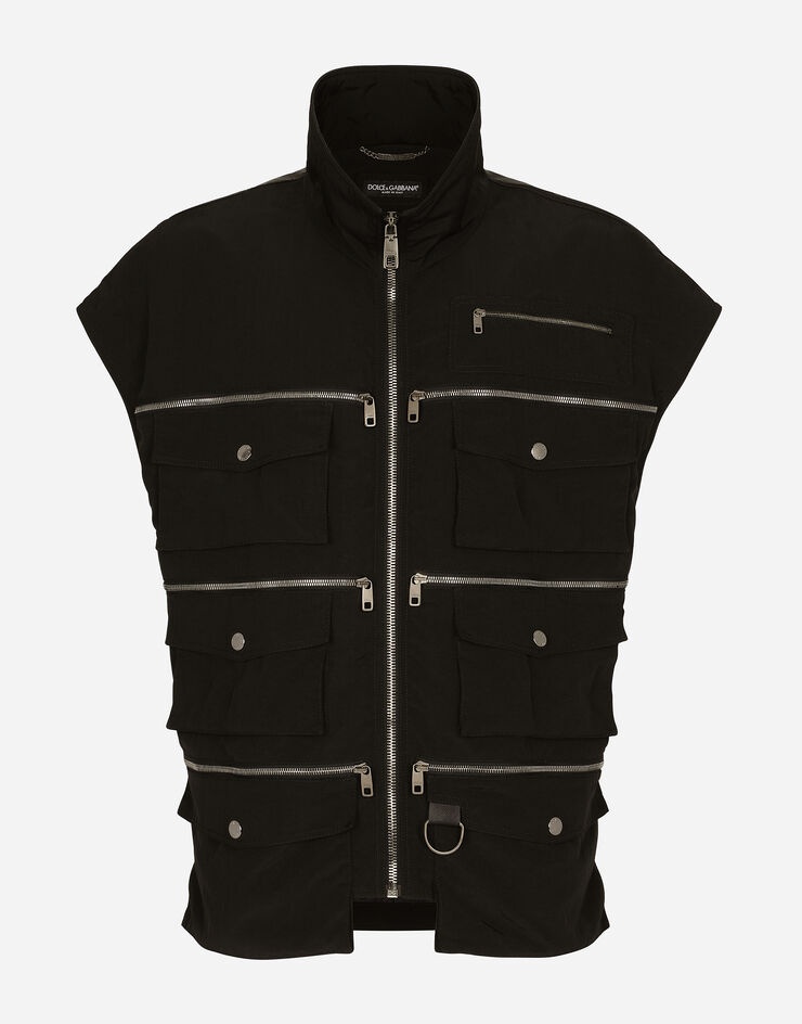 Sleeveless high-necked jacket in light cordura with zipped details: • Light insulated padding • Regular fit • Front zipper fastening • Lined • The piece measures 65 cm from the rear collar seam on a size IT 48 • The model is 185 cm tall and wears a size IT 48 • Made in Italy Care And Details External composition: 100% Polyamide Internal composition: 100% Polyamide