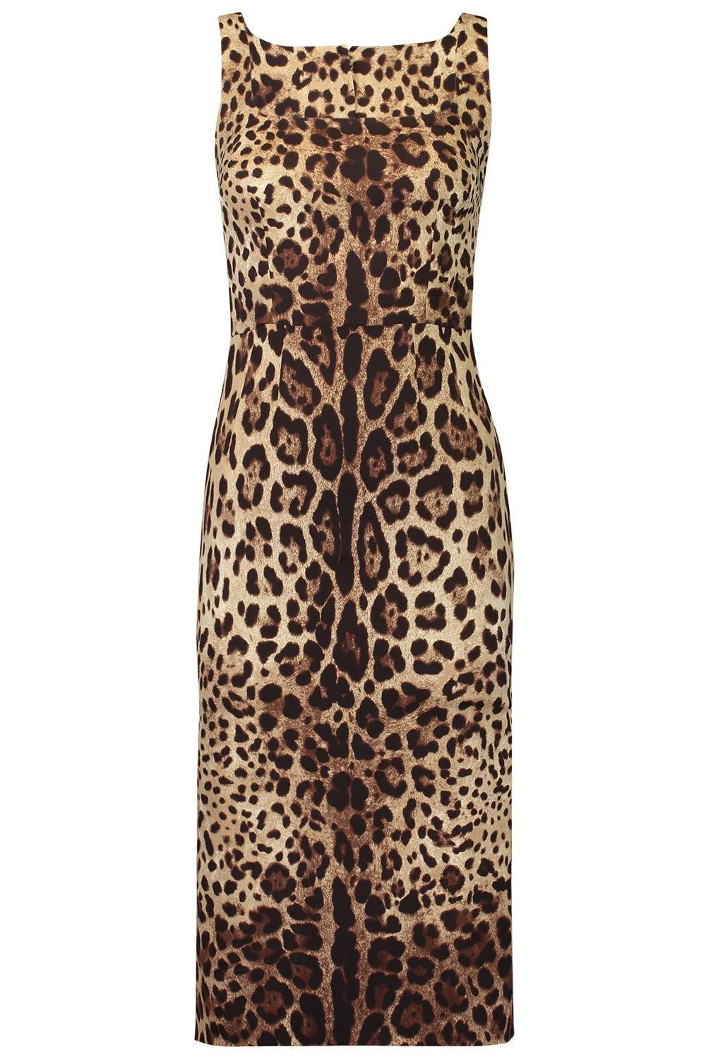 DETAILS AND INSIGHT Dolce & Gabbana sleeveless midi dress in leopard. 05% Ea + 95% Se Light Dry Clean Made In Italy Style F6F4ZT-GDCLX-HY13M