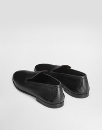 The Erice slipper is a sophisticated choice for the modern man, made with materials that enhances the elegant and contemporary design. Goatskin slippers: • Black • Erice shape • Leather outsole • Leather heel insole customized with label • Item equipped with black cotton bag and black embossed box • Heel height 15 mm • Made in Italy External Composition: 100% Goatskin Internal Composition: 95% Goatskin, 3% Viscose, 2% Silk