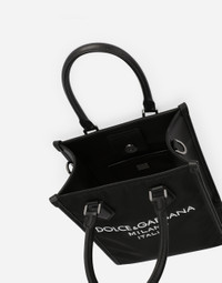 • Concealed magnetic fastening • Calfskin top handles • Adjustable and detachable tape strap with calfskin details • Nylon lining and flat pocket • Item comes with a branded dust bag • Measurements: 25 x 19.5 x 9 cm • Made in Italy Care And Details External composition: 50% Polyamide 20% Acrylic 15% Calfskin 15% Viscose Internal composition: 85% Polyamide 15% Calfskin