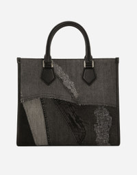 Practical and spacious, this small shopper comes in patchwork denim and features the logo tag. Small patchwork denim shopper with logo tag: • Black • Concealed magnetic fastening • Calfskin top handles • Adjustable and detachable tape strap with calfskin details • Fabric lining, a zipped pocket and two flat pockets • Item comes with a branded dust bag • Measurements: H27 x W31 x D12 cm • Made in Italy External composition: 85% Cotton 10% Calfskin 5% Viscose Internal composition: 80% Cotton 10% Calfskin 10% Acrylic