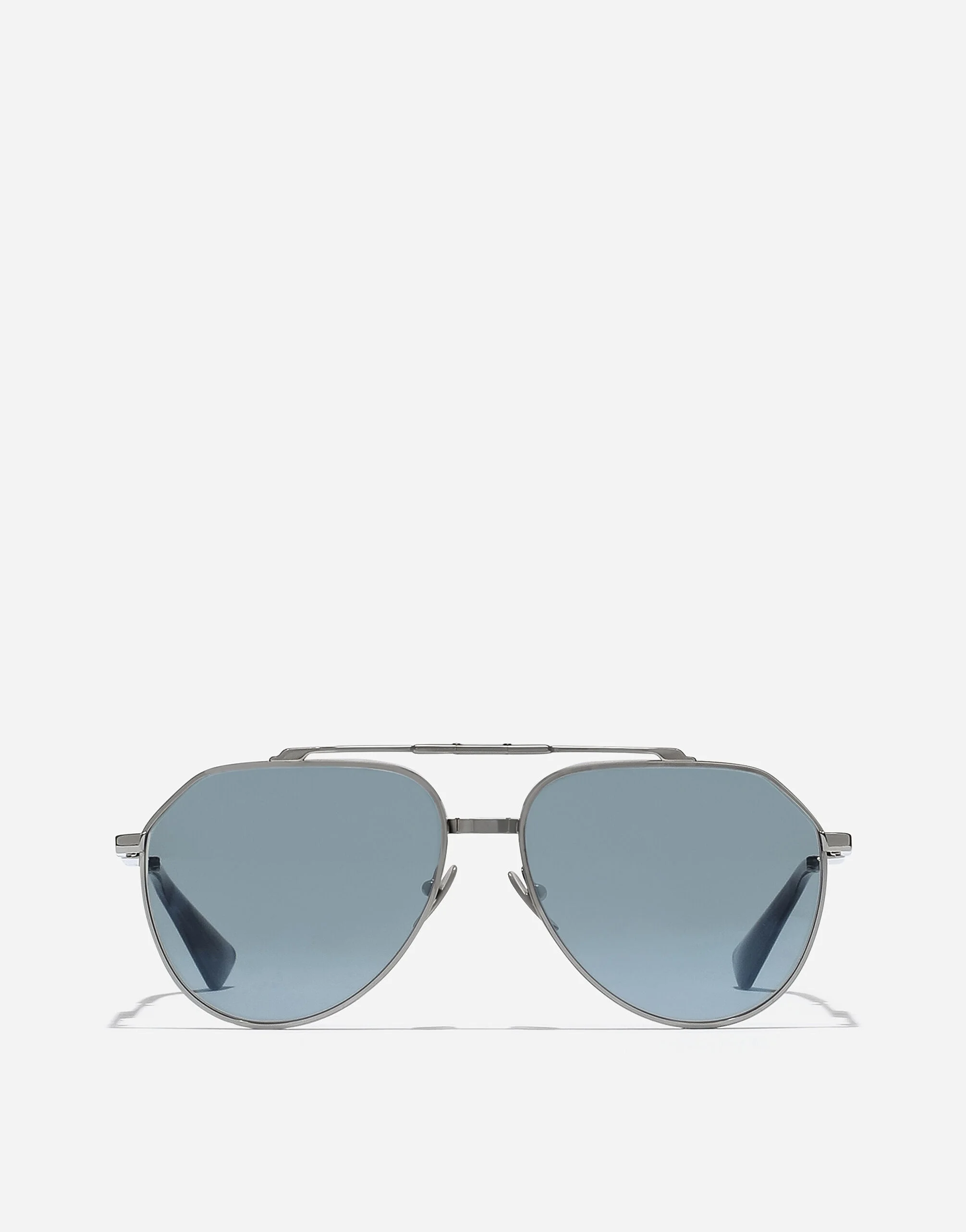 Reinterpretation of the timeless inconic Dolce&Gabbana Stefano model with a contemporary touch. • Gunmetal metal frame • Gunmetal metal temples • Light blue lenses • 100% UV protection • Size: 60 - 15 - 140 mm • Fitting: Adjustable nosepads • Packaging: Istitutional • Made in Italy