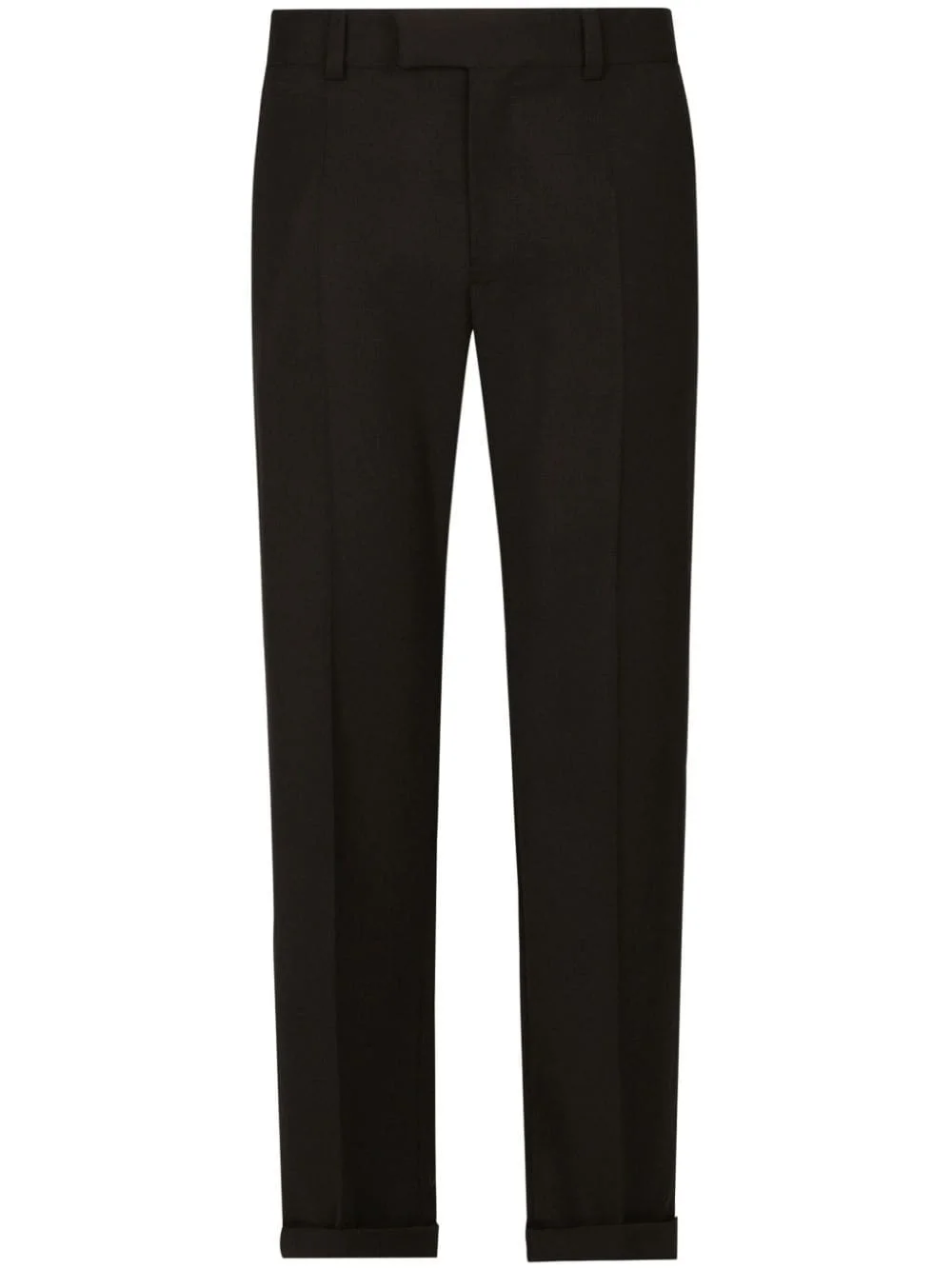 straigh-leg virgin-wool trousers Highlights - Black - Virgin wool - Belt loops - Concealed front fastening - Two side slit pockets - Mid-rise - Straight leg - Turn-up hem Made in Italy Composition Virgin Wool 100%