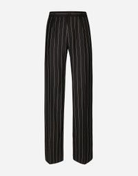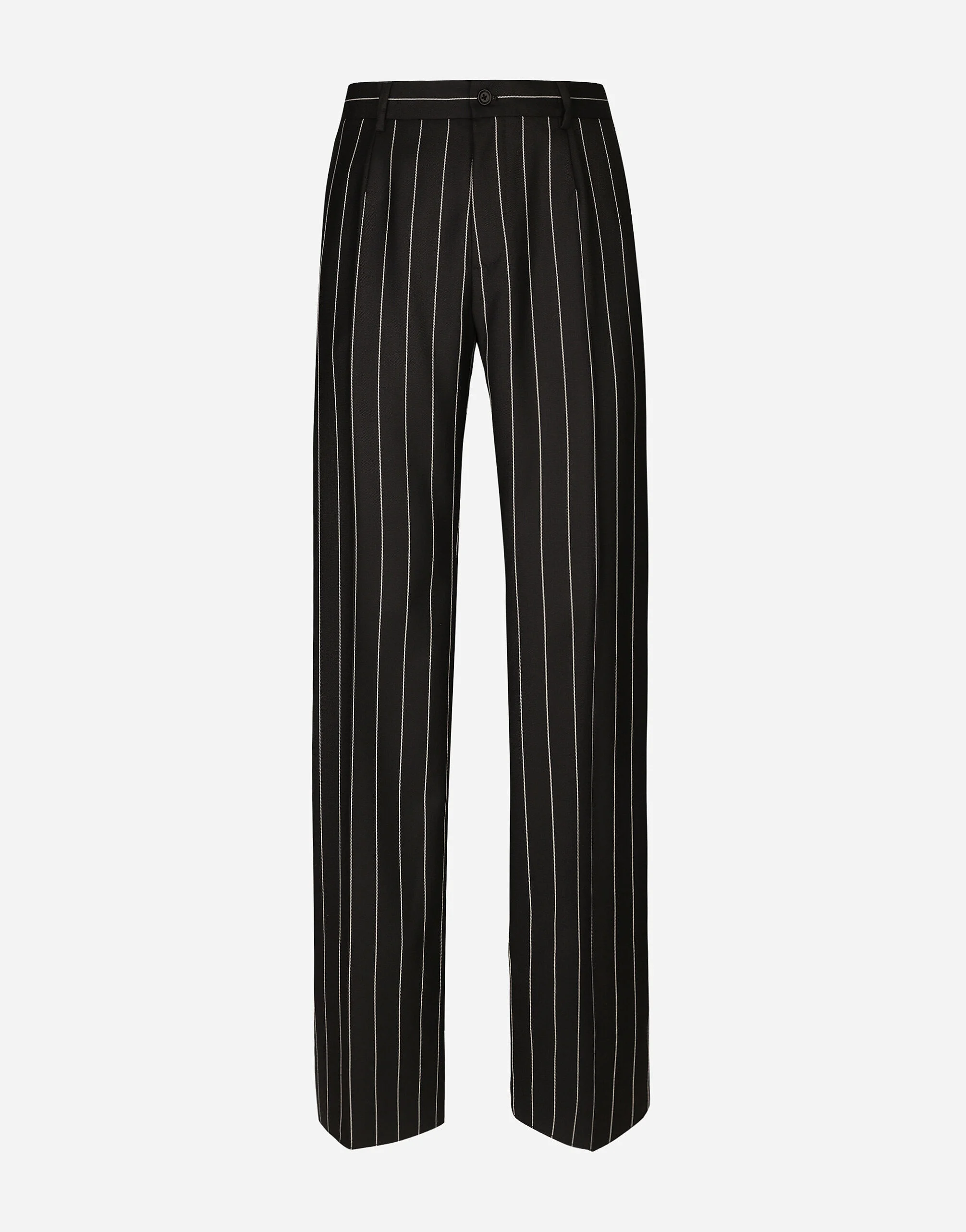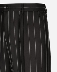 The SS24 “Stile” Collection recounts and clearly presents a strong concept: the unique and unmistakable style of Dolce&Gabbana. A word that is more than a statement. It is a concept! The designers work with surfaces, textures, layers and color nuances, as well as the sheen and fineness of the materials themselves, creating a “Stylish” collection. We’re going back to our roots with the desire to reaffirm the “Stile” - style -, flair and iconic DNA of the brand. Tailored straight-leg wool pinstripe pants: • Black • Regular fit • Belt loops on the waist • Fly-covered zipper and button fastening • Front slant pockets and buttoned welt pockets at the back • The item measures 120 cm on the outer leg and the hem is 28 cm wide on a size IT 48 • Made in Italy External composition: 100% Wool