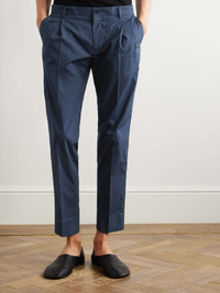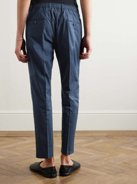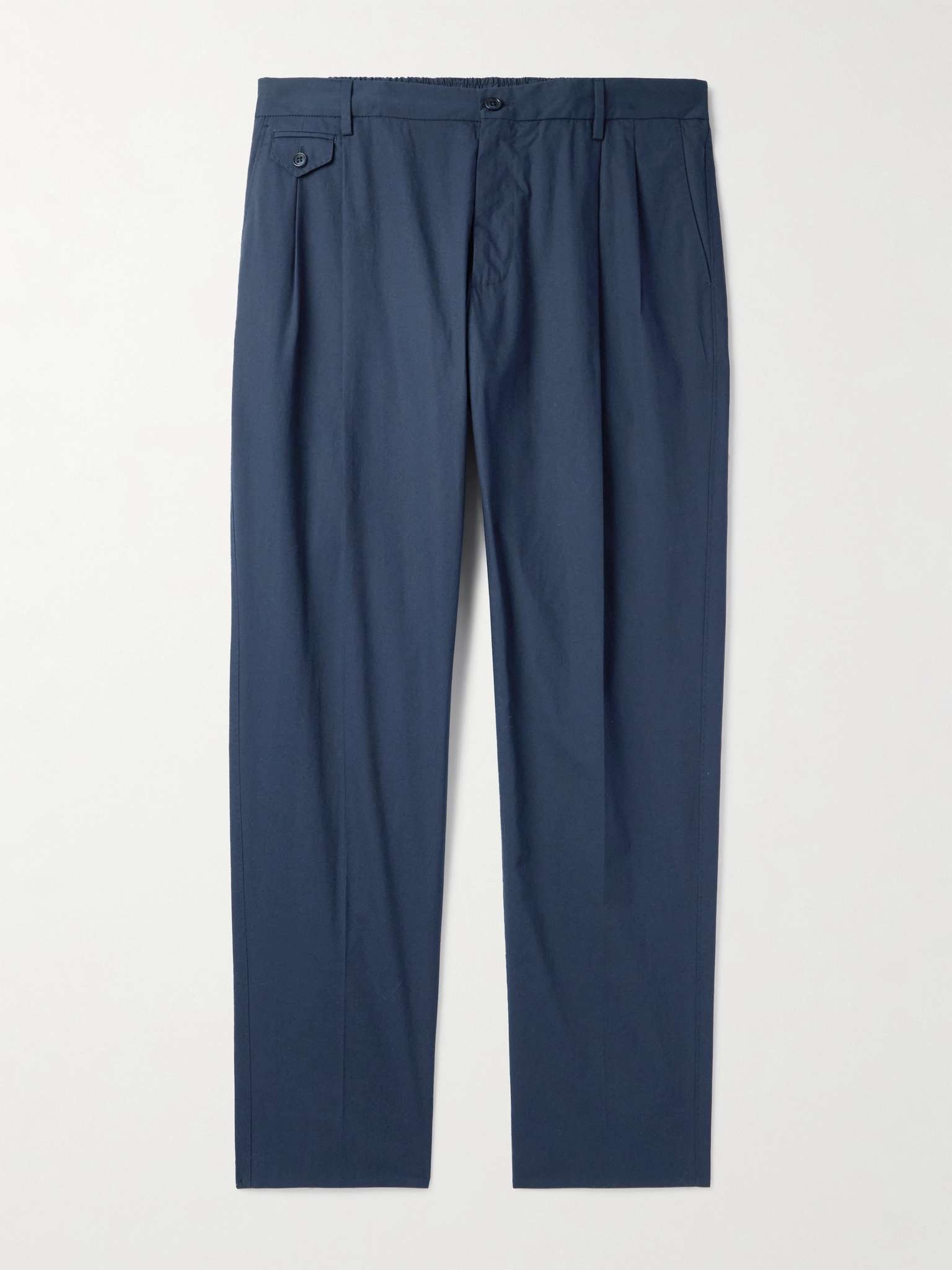 Slim-Fit Tapered Pleated Cotton-Poplin Trousers
