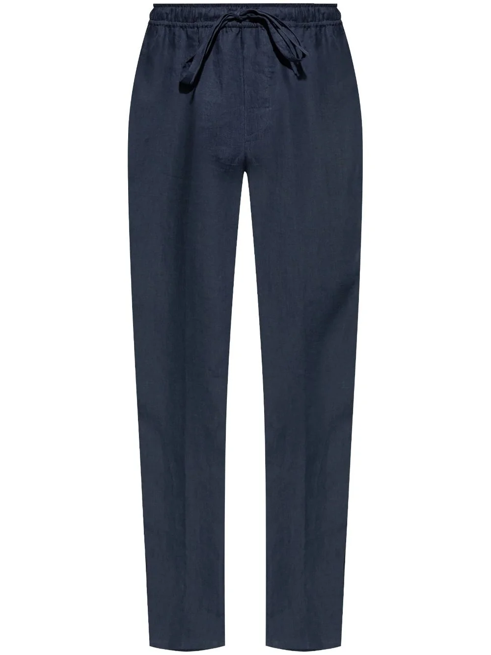 straight-leg trousers Highlights - Navy blue - Elasticated drawstring waistband - Two side inset pockets - Piped-trim detailing Made in Italy Composition Linen/Flax 98%, Silk 2%