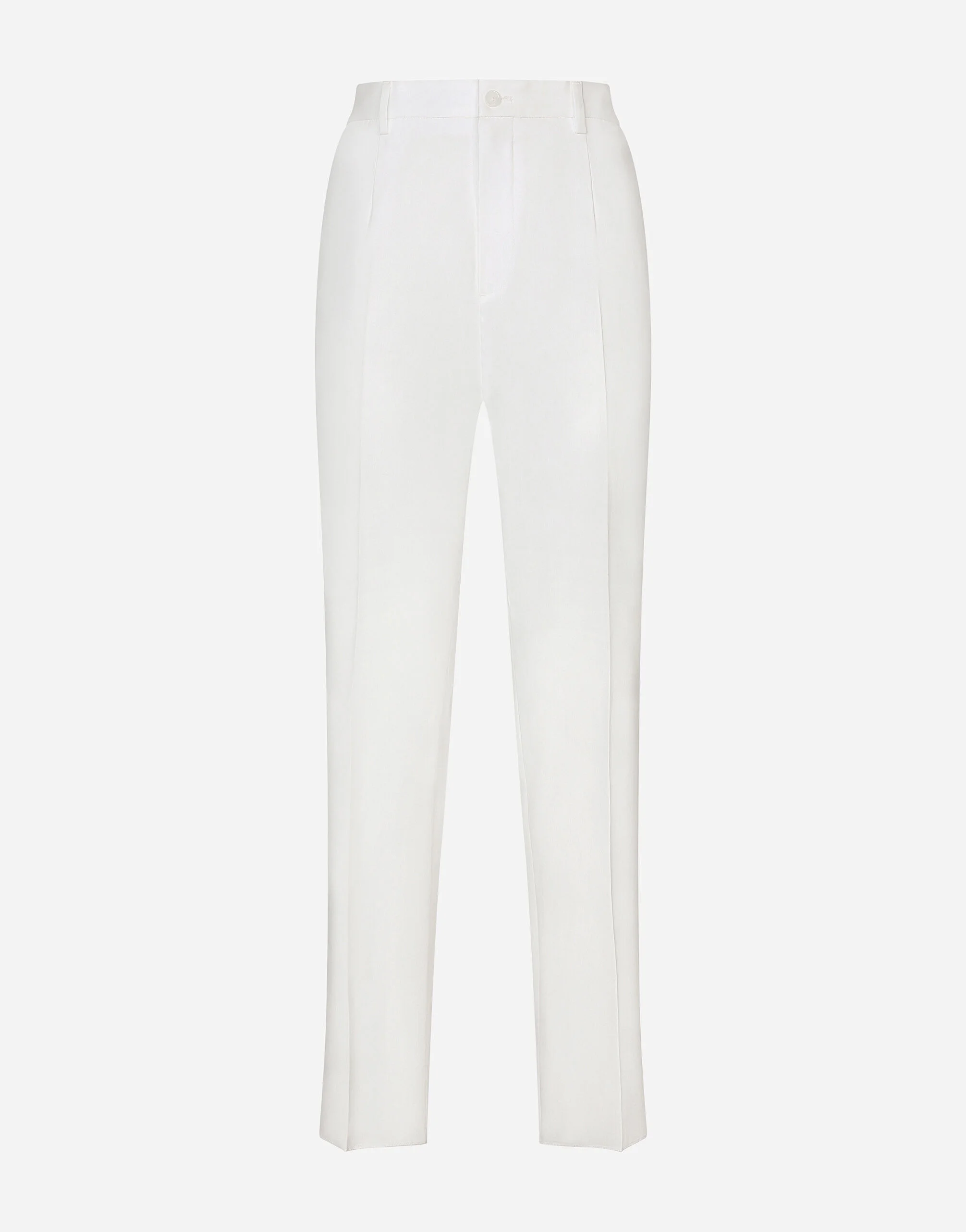 Tailored stretch cotton twill pants with a metal tag featuring the Dolce&Gabbana logo: • Regular fit • Belt loops on the waist • Fly-covered zipper and button fastening • Front slant pockets and welt back pockets • The item measures 99 cm on the outer leg and the hem is 19 cm wide on a size IT 48 • The model is 185 cm tall and wears a size IT 48 • Made in Italy Care And Details External composition: 97% Cotton 3% Spandex