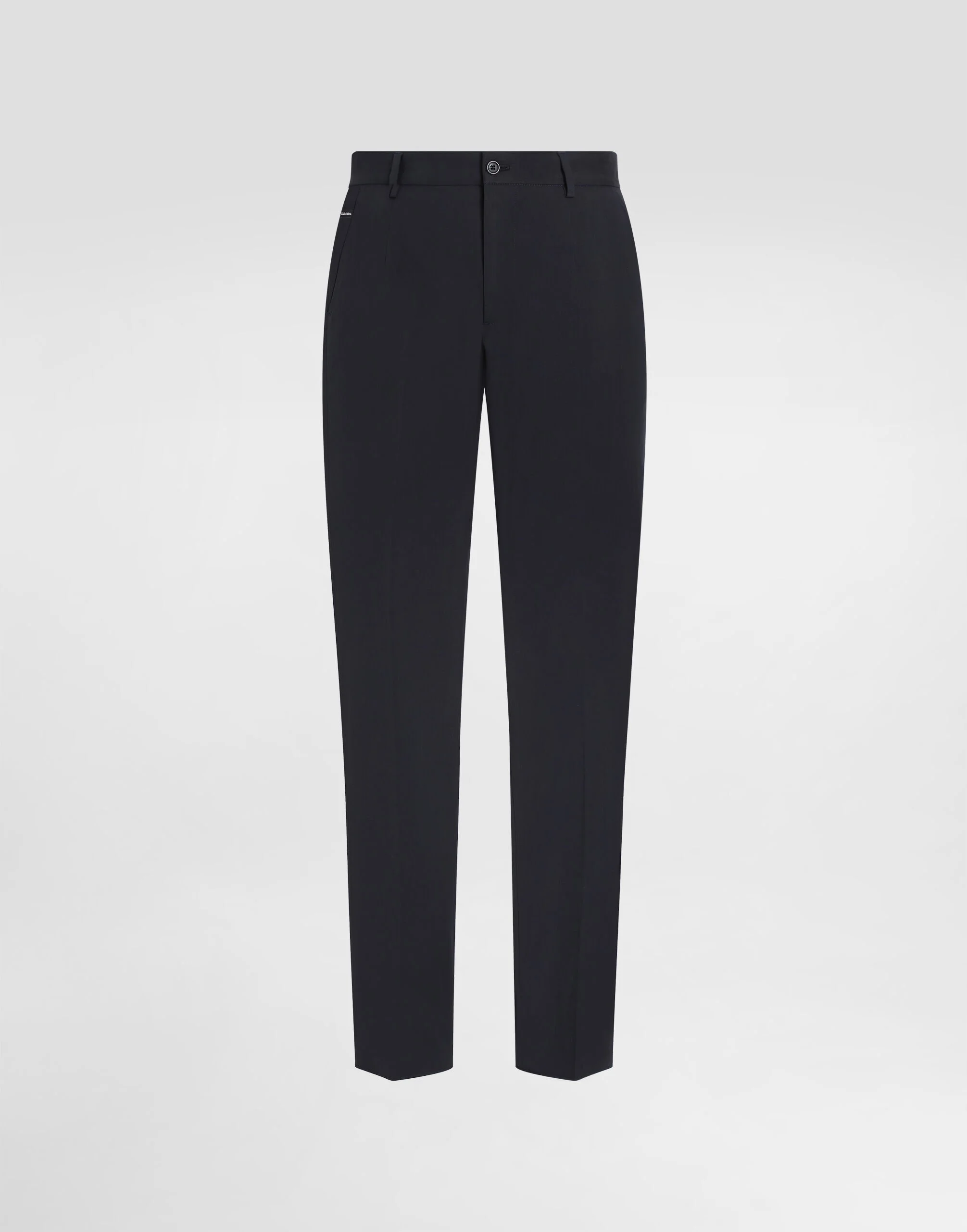 Tailored stretch cotton twill pants with a metal tag featuring the Dolce&Gabbana logo: • Regular fit • Belt loops on the waist • Fly-covered zipper and button fastening • Front slant pockets and welt back pockets • The item measures 99 cm on the outer leg and the hem is 19 cm wide on a size IT 48 • The model is 185 cm tall and wears a size IT 48 • Made in Italy Care And Details External composition: 97% Cotton 3% Spandex