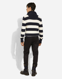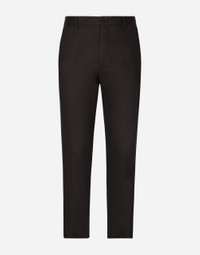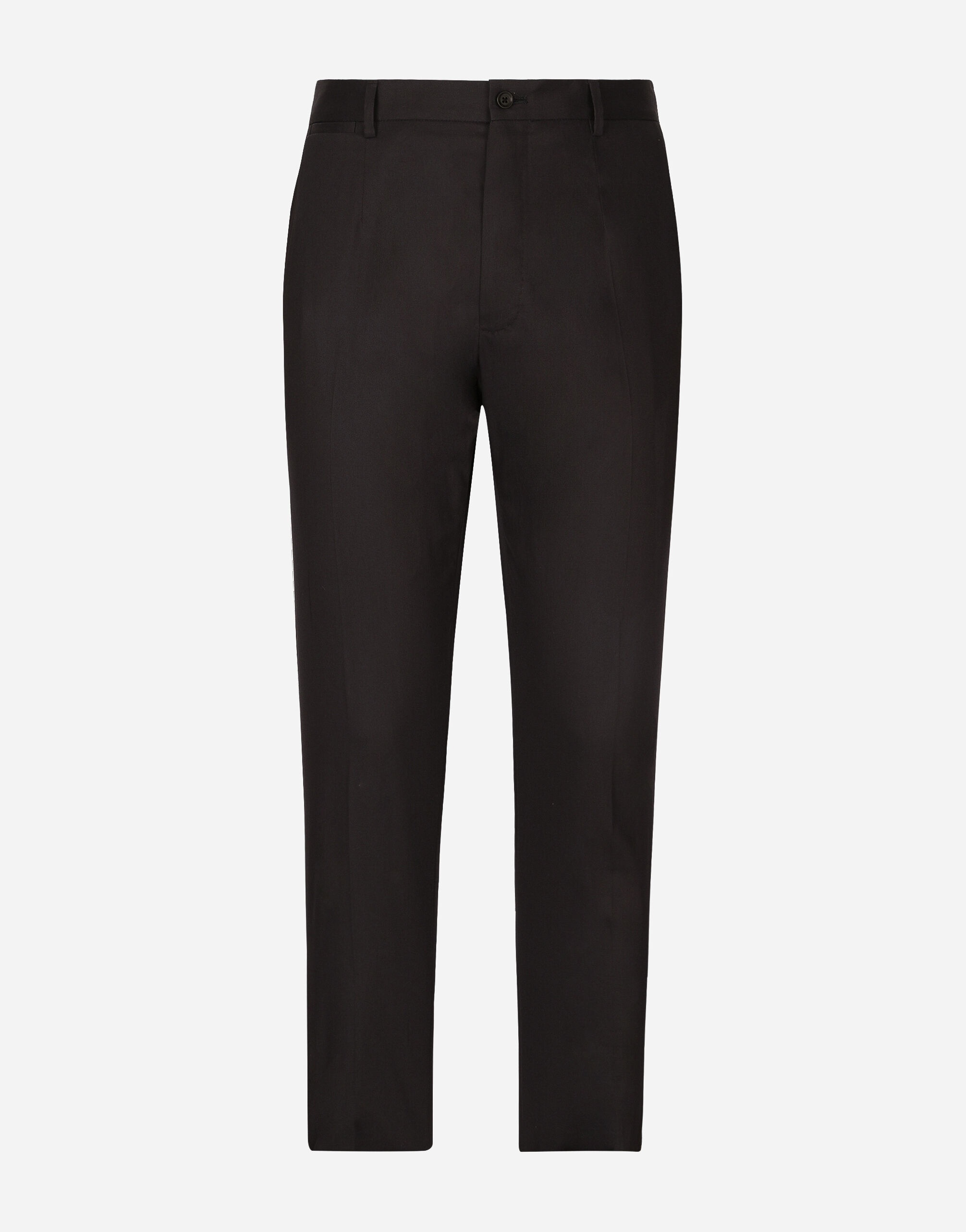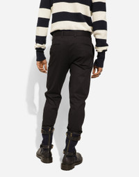 The Marina line has us dreaming of the Mediterranean sea and its myriad shades of blue, while also bringing weathered sailors to mind, yet with a contemporary edge. Aesthetic influences and clear lines, stormy sea blue jackets, multi-pocket pieces, waterproof garments, anchor prints and materials that invite us to discover the “lighthouse keeper”. Fascinating, enigmatic and at times lonely, it tells the tale of a new masculine sensuality built with small yet precise proportions and attention to stylish detail. Tailored stretch cotton pants with DG hardware: • Blue • Regular fit • Belt loops on the waist • Fly-covered zipper and button fastening • Front slant pockets and welt back pockets • The item measures 99 cm on the outer leg and the hem is 17 cm wide on a size IT 48 • Made in Italy External composition: 96% Cotton 4% Spandex