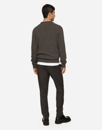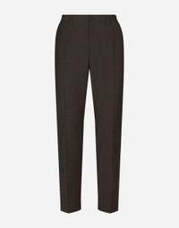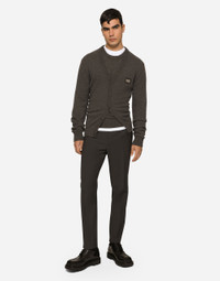 Tailored stretch cotton pants with elasticated rear waistband with DG logo patch: • Regular fit • Belt loops on the waist • Fly-covered zipper and button fastening • Front slant pockets and buttoned welt pockets at the back • Gray • The item measures 99 cm on the outer leg and the hem is 17 cm wide on a size IT 48 • The model is 185 cm tall and wears a size IT 48 • Made in Italy Care And Details External composition: 97% Cotton 3% Spandex