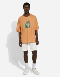 The Banano collection immerses us in the beauty of nature and, thanks to its vibrant colors, transports us to tropical cities, distinguished by Art Deco villas and lush gardens. Vintage 1940s graphics, fabrics and special volumes for the stylish man who loves to tell his story through the craftsmanship, beauty and originality of his chosen garments. This is how the designers recount a fantastic place, the tropics, a magical locale where you can dream, where nature spoils us with its unique colors. Stretch cotton Bermuda shorts: • Beige • Regular fit • Belt loops on the waist • Fly-covered zipper and button fastening • Front slant pockets and buttoned welt pockets at the back • The item measures 48.5 cm on the outer leg and the hem is 23 cm wide on a size IT 48 • Made in Italy External composition: 97% Cotton 3% Spandex