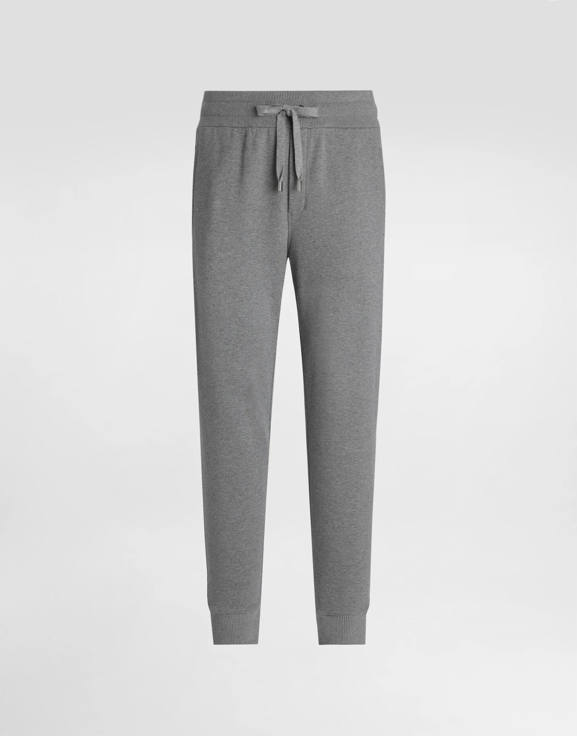 The DNA Men's Collection reimagines daily wear with bold contrasts, meticulous details, and innovative silhouettes. Outerwear stands out with clean lines and high-tech materials, merging sportiness with sophistication in sweaters, sweatshirts, and trousers. A striking color palette, including Black Sicily, caramel, cream, burgundy, and stone gray, pairs with iconic prints like Leopard and Polka dots, enhancing the collection's authentic and refined look. Cotton jogging pants with a metal tag and the Dolce&Gabbana logo: • Gray • Regular fit • Stretch waistband with drawstring and branded metal aglets • Front pockets and back pocket with zipper • Stretch ankle cuffs • The item measures 99 cm on the outer leg and the hem is 14 cm wide on a size IT 48 • Made in Italy External composition: 100% Cotton