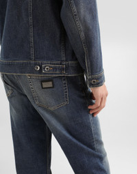 Light blue wash stretch denim jacket with a metal plate featuring the Dolce&Gabbana logo: • Regular fit • Branded metal buttons on the front • Pockets with buttons • Adjustable details on the hem • The piece measures 69 cm from the rear collar seam on a size IT 48 • The model is 185 cm tall and wears a size IT 48 • Made in Italy Care And Details External composition: 98% Cotton 2% Spandex