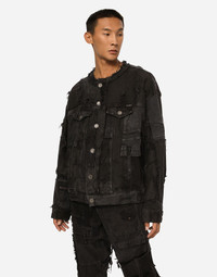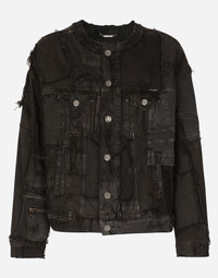 Stretch denim patchwork jacket with a vintage metal tag featuring the Dolce&Gabbana logo: • Oversize fit • Branded metal buttons on the front • Pockets with buttons and fabric label with Dolce&Gabbana logo • Adjustable details on the hem • The piece measures 70 cm from the rear collar seam on a size IT 48 • The model is 185 cm tall and wears a size IT 48 • Made in Italy Care And Details External composition: 98% Cotton 2% Spandex