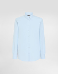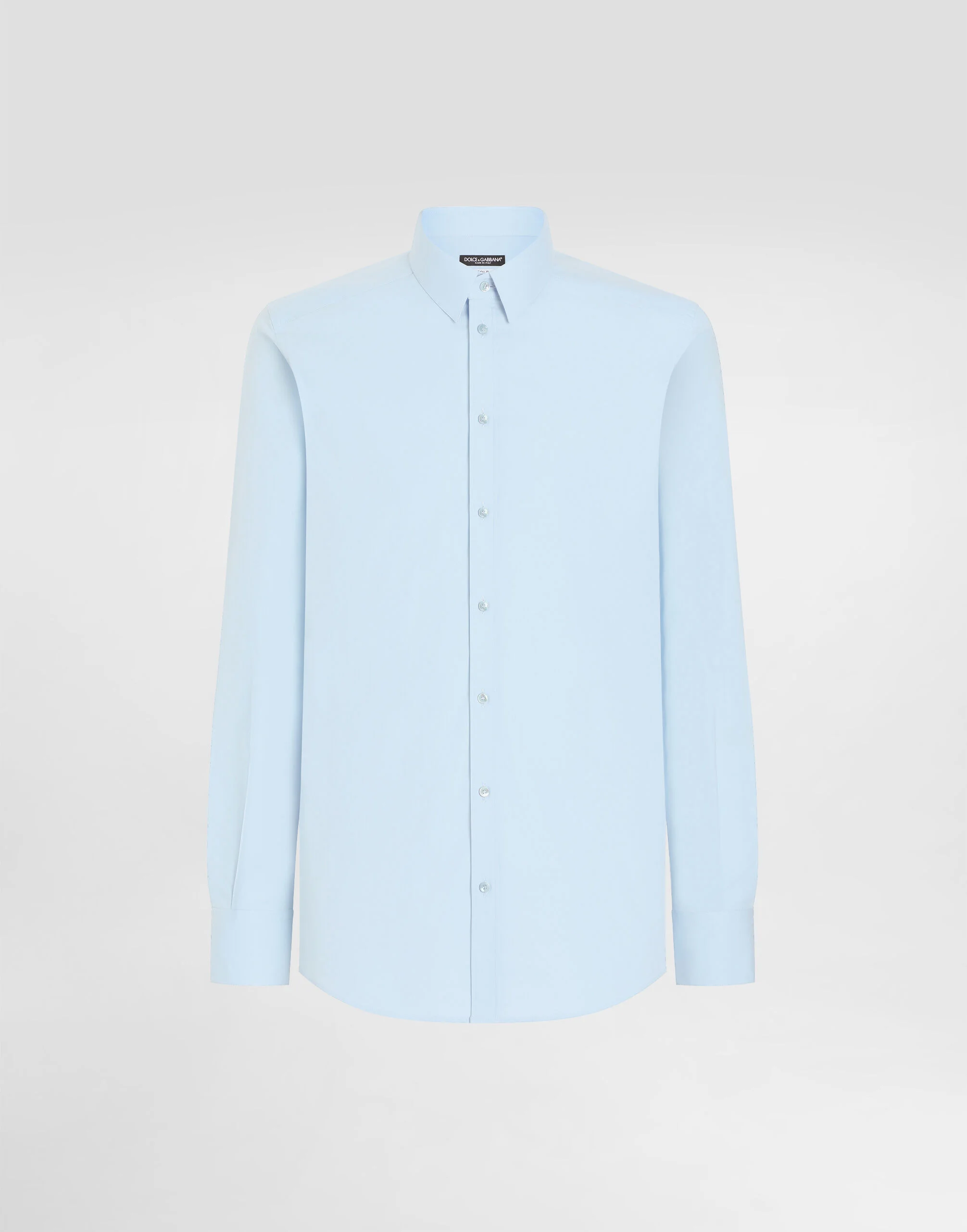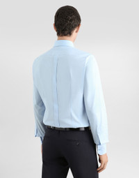 Stretch cotton poplin shirt: • Light blue •Slim Gold fit •Kent collar •Long sleeves •Button fastenings •Rear box pleat and yoke •Darts down the back •The piece measures 80 cm from the rear collar seam on a size IT 40 •The model is 185 cm tall and wears a size IT 40 •Made in Italy Care And Details External composition: 97% Cotton 3% Spandex