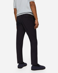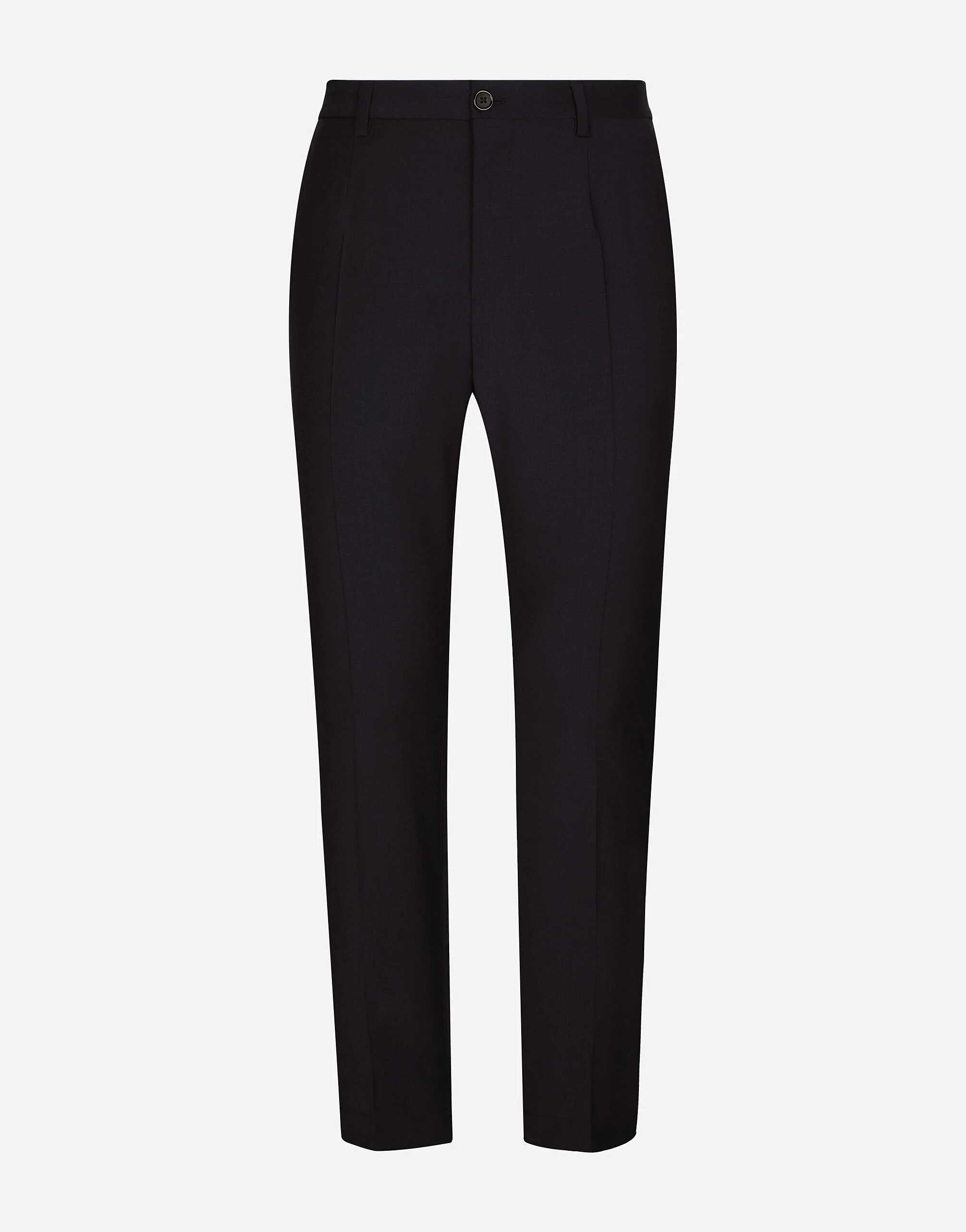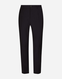 Tailored stretch wool pants with elasticated rear waistband with DG logo patch: • Blue •Regular fit •Belt loops on the waist •Fly-covered zipper and button fastening •Front slant pockets and buttoned welt pockets at the back •The item measures 99 cm on the outer leg and the hem is 17 cm wide on a size IT 48 •The model is 185 cm tall and wears a size IT 48 •Made in Italy Care And Details External composition: 55% Wool 41% Polyester 4% Spandex