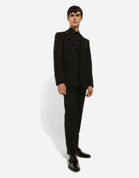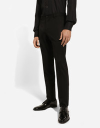 Tailored stretch wool twill pants: • Black • Regular fit • Belt loops on the waist • Fly-covered zipper and button fastening • Front slant pockets and buttoned welt pockets at the back • The item measures 115.5 cm on the outer leg and the hem is 17.5 cm wide on a size IT 48 • Made in Italy Dolce & Gabbana accessories have been created for the man who loves those little stylish details that make all the difference. External composition: 97% Wool 3% Spandex