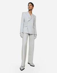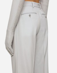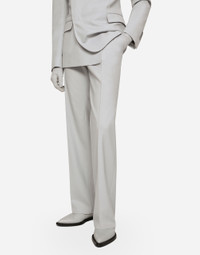Tailored stretch wool twill pants with a straight leg: • Regular fit • Belt loops on the waist • Fly-covered zipper and button fastening • Front slant pockets and buttoned welt pockets at the back • Gray • The item measures 120 cm on the outer leg and the hem is 28 cm wide on a size IT 48 • The model is 185 cm tall and wears a size IT 48 • Made in Italy Care And Details External composition: 97% Wool 3% Spandex