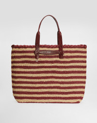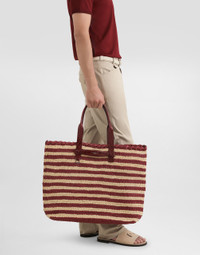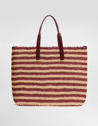 Raffia shopper: • Burgundy • Measurements: H44 x W50 x D14 cm • Item comes with a branded dust bag • Packaged in a branded box • Made in Italy External composition: 90% Viscose 10% Calfskin Internal composition: 90% Viscose 10% Calfskin