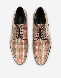 • Blake construction • Suede upper with fusible rhinestones • Waxed laces • Calfskin insole with quilted satin insert and branded label • Leather bottom assembly • Made in Italy Care And Details External composition: 50% Calfskin 50% Glass Internal composition: 50% Goatskin 50% Cotton