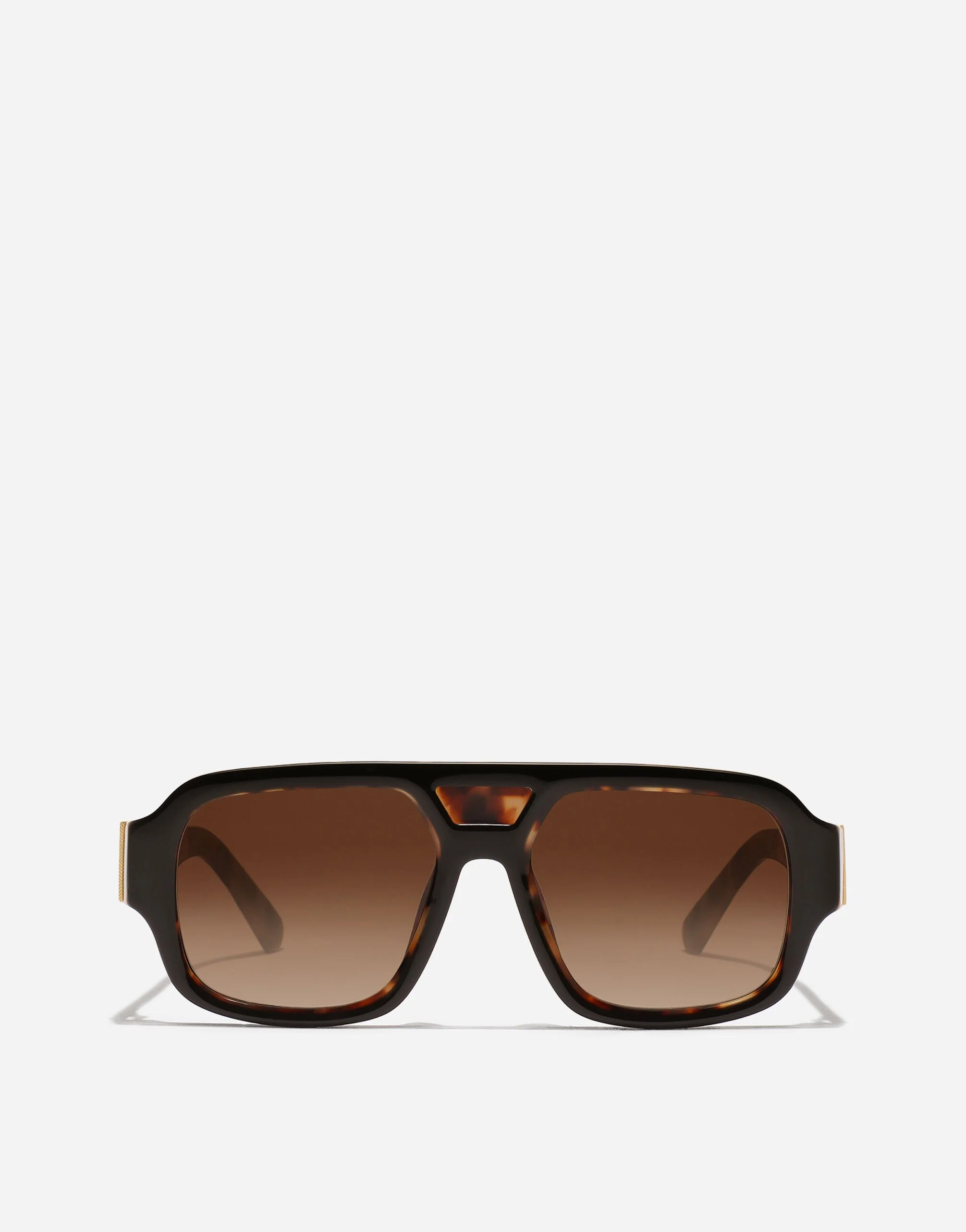 The iconic navigator in acetate reinterpreted in a geometric version with bolder volumes • Black on red havana acetate frame • Black on red havana acetate temples • Gradient brown lenses • 100% UV protection • Size bridge - temple- lens: 18 - 145 - 46.3 mm • Fitting: Standard • Packaging: Institutional • Made in Italy
