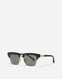 A new model features a frontal frame defined by square lenses, elegantly framed at the top by bold acetate profiles. • Black acetate frame • Black acetate and silver metal temples • Mirror black lenses • 100% UV protection • Size bridge - temple- lens: 18 - 145 - x mm • Fitting: Adjustable nosepads • Packaging: Institutional • Made in Italy