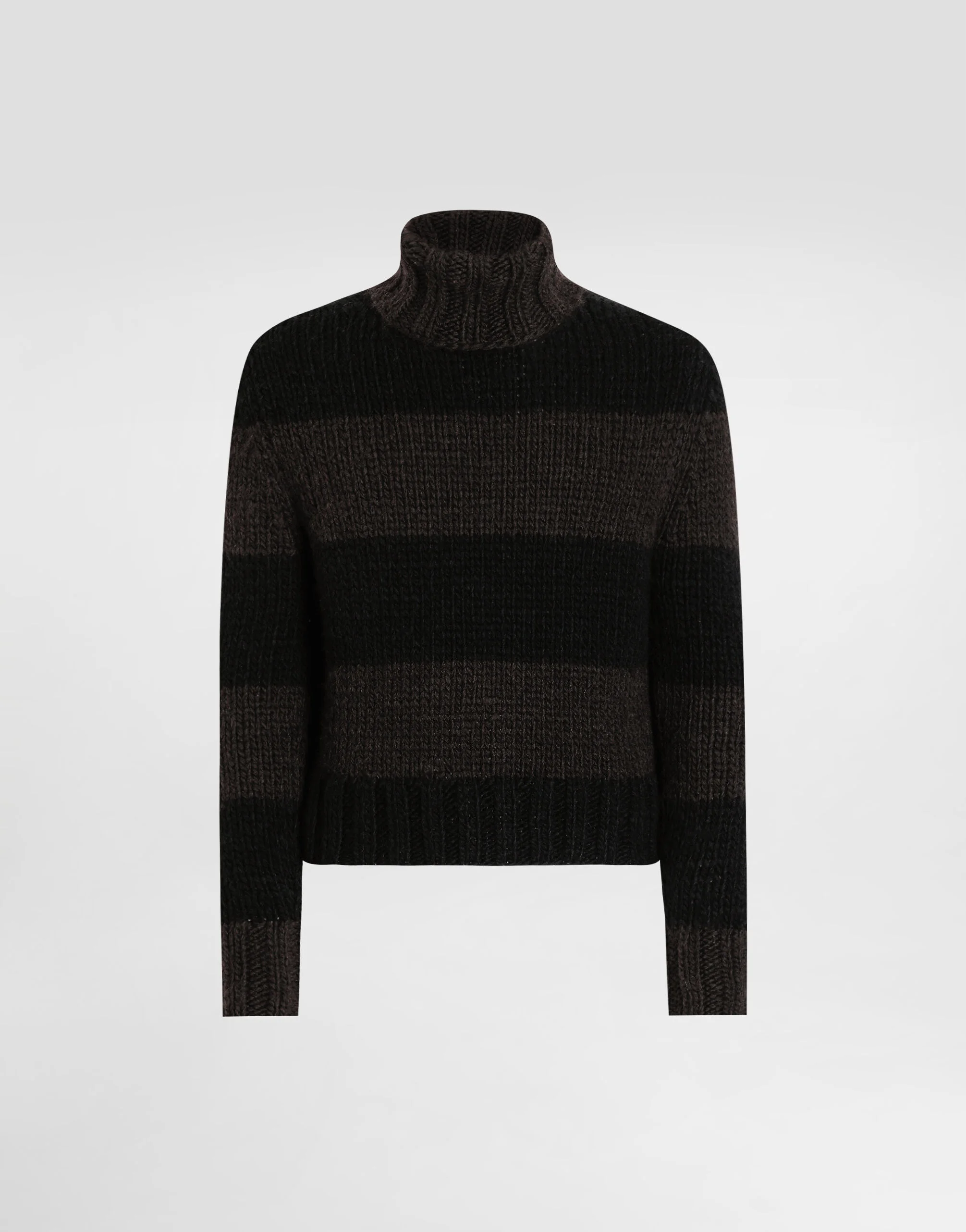 The scene is set for Dolce&Gabbana's distinctive and iconic aesthetic codes in the Collection from Men's Fall/Winter 2025 Fashion Show. The evening lights up with radiant brooches and is enriched with classic suits and blazers of timeless elegance. This long-sleeved turtleneck is perfect for adding a touch of elegance and comfort to your everyday looks. Made with a fine wool blend workmanship, it offers warmth and softness ideal for the colder seasons. Wool blend turtleneck pullover: • Multi-colored • Long sleeves • The model is 185 cm tall and wears a size 48 IT • Made in Italy External Composition: 45% Wool, 35% Acrylic, 11% Cashmere, 9% Alpaca