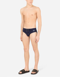 The beachwear collection comes with new details embellishing the garments. Swim briefs in run-resistant technical fabric: • Logo-detailed stretch waistband with a drawstring and nickel-free metal aglets • Rubberized metal Dolce&Gabbana logo plate • Matching light polyester pouch • Sizes available: from III to VII • Made in Italy Care And Details External composition: 72% Polyamide 28% Spandex Internal composition: 85% Polyamide 15% Spandex