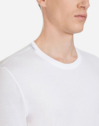 T-shirt in solid cotton jersey. • Short sleeves • Round neckline • Logo label on the neckline • The bust measures 61 cm from the back neckline and wears an Italian size 48 • Made in Italy Care And Details Composition: 100% Cotton