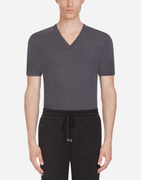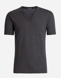 T-shirt in solid cotton jersey. • Short sleeves • V neckline • Logo label on the neckline • The bust measures 61 cm from the back neckline and wears an Italian size 48 • Made in Italy Care And Details Composition: 100% Cotton