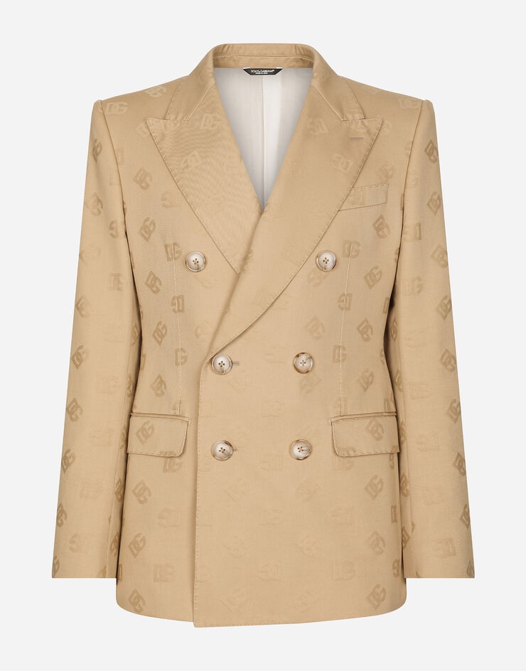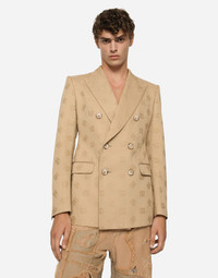 Tailored double-breasted cotton jacquard jacket with DG Monogram detail: • Slim Sicilia fit • Peak lapels • Button fastenings on the front • Outer flap pockets and breast pocket, inner welt pockets with button • Buttoned cuffs • Central vent • Lined • The piece measures 73.5 cm from the rear collar seam on a size IT 48 • The model is 185 cm tall and wears a size IT 48 • Made in Italy Care And Details External composition: 100% Cotton Internal composition: 100% Cotton
