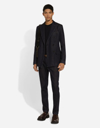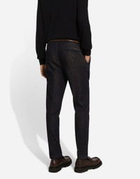 Tailoring means beauty, proportions, skilled cuts and sophisticated details. The FW 24-25 Sartoriale Collection builds on this solid foundation to define new ways of pairing colors, materials and textures. Sicilian rock gray envelops different textures, while Nero Sicilia black adorns textile and velvet weaves and camel pairs with orange. Various types of pinstripes, textured-effect cashmere, double fabrics, suede and denim meet in the looks. Five-pocket chino jeans in cotton denim: • Blue • Regular fit • Fly-covered zipper and button fastening • The item measures 105 cm on the outer leg and the hem is 18 cm wide on a size IT 48 • Made in Italy External composition: 65% Viscose 28% Cotton 5% Silk 2% Spandex