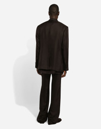 The SS24 “Stile” Collection recounts and clearly presents a strong concept: the unique and unmistakable style of Dolce&Gabbana. A word that is more than a statement. It is a concept! The designers work with surfaces, textures, layers and color nuances, as well as the sheen and fineness of the materials themselves, creating a “Stylish” collection. We’re going back to our roots with the desire to reaffirm the “Stile” - style -, flair and iconic DNA of the brand. Tailored silk pants with darts: • Brown • Regular fit • Belt loops on the waist • Fly-covered zipper and button fastening • Front slant pockets and buttoned welt pockets at the back • The item measures 120 cm on the outer leg and the hem is 28 cm wide on a size IT 48 • Made in Italy External composition: 100% Silk