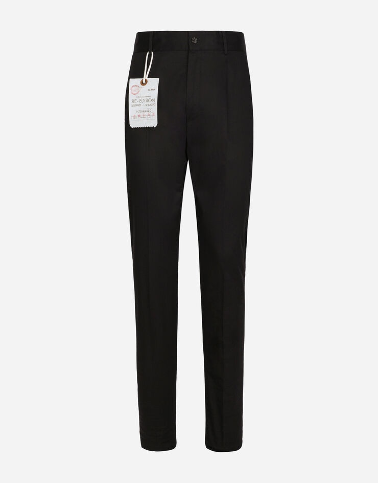 Tailored stretch cotton pants with the Re-Edition label: • Regular fit • Belt loops on the waist • Fly-covered zipper and button fastening • Front slant pockets and buttoned welt pockets at the back • The item measures 120 cm on the outer leg and the hem is 16.5 cm wide on a size IT 48 • The model is 185 cm tall and wears a size IT 48 • Made in Italy Care And Details External composition: 98% Cotton 2% Spandex