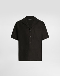 Italy and its beauty are reflected in the Men’s SS25 Collection. Woven raffia and leather give life to jackets, polo-shirts and sweaters to celebrating Italian craftsmanship. The color palette ranges from Nero Sicilia black to burgundy, contributing to conveying a sense of eternal elegance. Refined accessories complement the look: belts and loafers with hand-finished details and oversize bags, such as the Sicily, the Marlene with crocodile-effect print and the versatile Adamo tote. Three-button short-sleeved linen shirt: • Black • Oversize fit • Patch breast pocket • Short sleeves • Button fastenings • The piece measures 74 cm from the rear collar seam on a size IT 40 • Made in Italy External composition: 100% Linen
