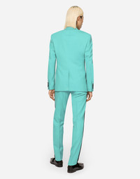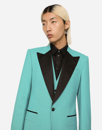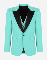 In the Magnificent collection, the 70s, where everything was possible in terms of style, meet the 2000s. The result is a classic that has been reinterpreted with new fabrics, treatments and pairings of prints and pastel colors, to encompass all the facets of a man who will become the icon of the eccentric and optimistic lifestyle. Elegant tailored three-piece tuxedo suit in stretch wool with duchesse details: • Slim Sicilia fit • Jacket with peak lapels, flap pockets, a breast pocket, and central vent • Single-breasted fastening with a single button and lined • V-neck vest with four buttons • Pants with front slant pockets and rear buttoned welt pockets • The jacket measures 73.5 cm - 28.9 inches from the back collar seam on a size IT 48 • The hem is 17.5 cm - 6.9 inches wide on a size IT 48 • The model is 185 cm - 72.8 inches tall and wears a size IT 48 • Made in Italy Care And Details External composition: 97% Wool 3% Spandex Internal composition: 100% Viscose