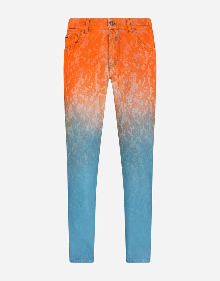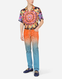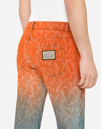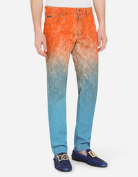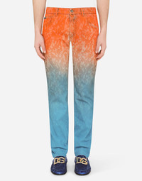 The “DG Light Therapy” fashion show is a tribute to life itself, positivity and folklore. Distinctive luminaries become wonderful photographic prints to create special, iconic pieces when combined with embroidery, crystals, sequins and jacquard designs. Five-pocket slim-fit jeans in tie-dye stretch denim: • Regular fit • Fly-covered zipper and button fastening • Metal Dolce&Gabbana logo plate on the back • The item measures 105 cm - 41.3 inches on the outer leg and the hem is 17 cm - 6.7 inches wide on a size IT 48 • The model is 185 cm - 72.8 inches tall and wears a size IT 48 • Made in Italy Care And Details External composition: 98% Cotton 2% Spandex